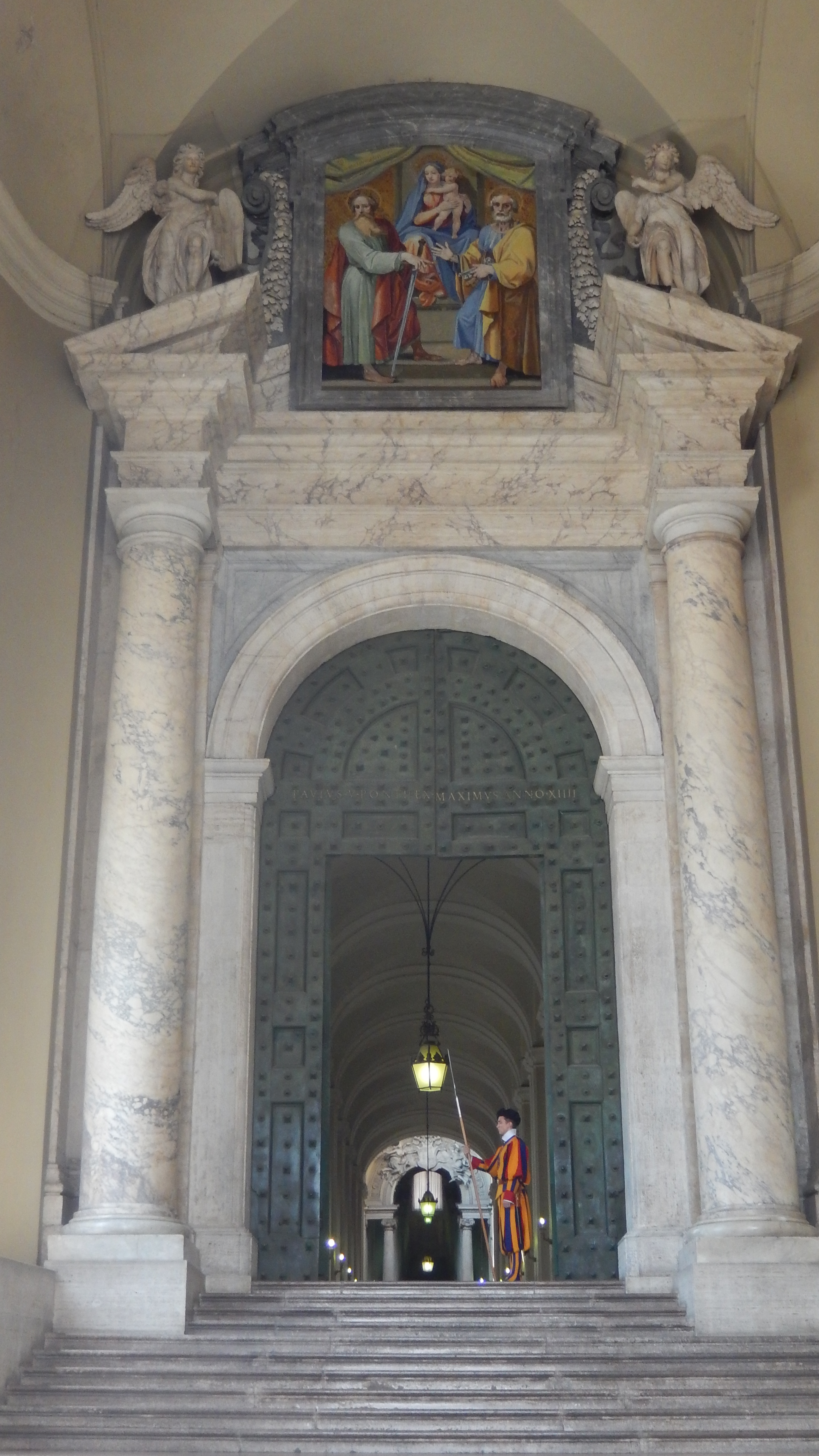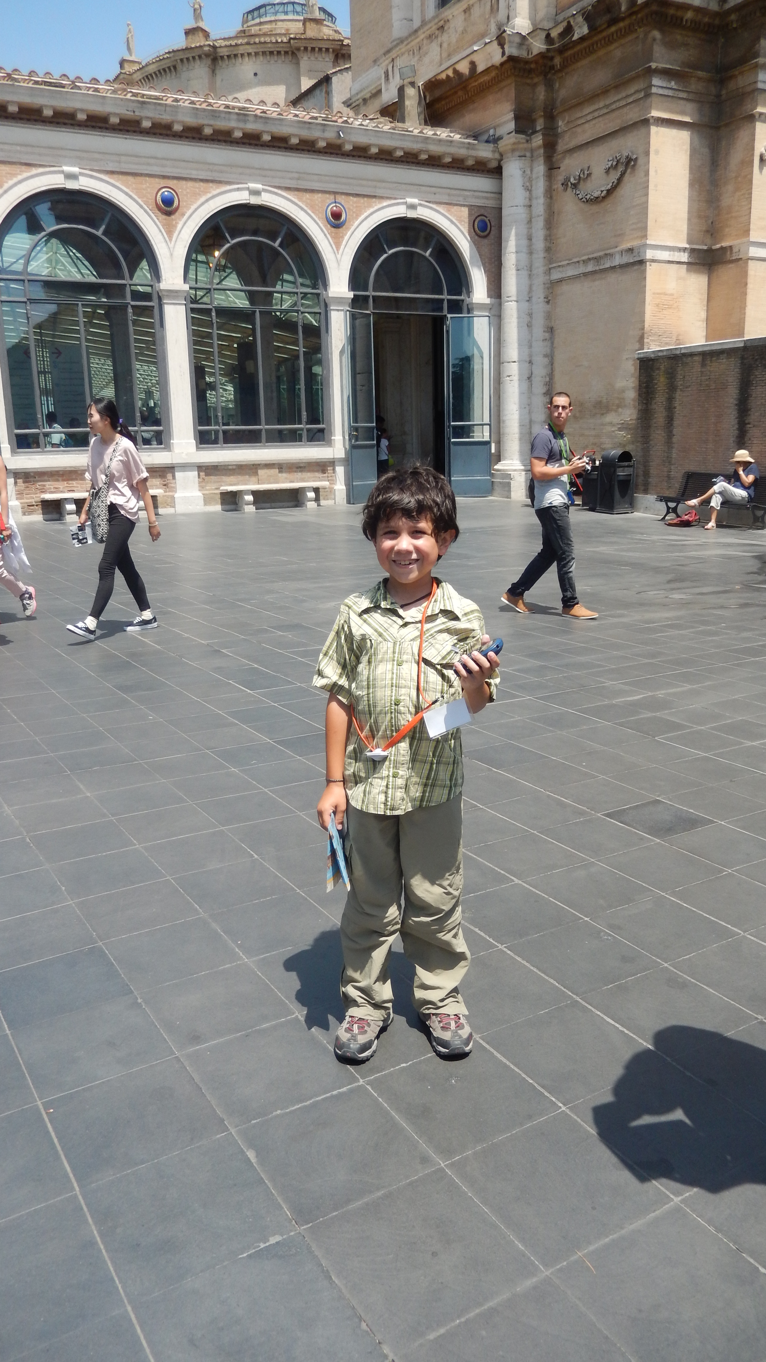 Inside of the Basilica, you can also go downstairs into the crypt where all of the deceased Pope’s have been buried. It is really cool to go through a read about when they each served as Pope and to think about all of the history that has happened through the years. We were not aloud to take pictures inside, but it was very beautiful down there as well. After going through the Basilica, we went around to go see the Vatican Museum. This was a separate line, but also not too bad. We had pre-purchased tickets for 1:00 and we pretty much got in right at that time. The museum had a really good audio program where the kids got their own guide that had more interesting kid stuff so that we could listen to the adult version. Hayden was SUPER excited that they had an entire section with Egyptian artifacts and that his audio guide had an “actual ancient Egyptian” talking to him. 🙂 Even for “non-arty” people like us, there were tons of really amazing things that we could definitely appreciate. The paintings were beautiful and there were tons of really neat sculptures too. We spent a few hours going through the museum before coming to the Sistine Chapel at the end. Unfortunately, no pictures are aloud in the Sistine Chapel, but it was certainly amazing. I have to say (and I’m sure true art lovers will disagree), I was more impressed with the ceilings in some of the other rooms than in the chapel. While it was really neat and the history of it is amazing, I thought that some of the other rooms (the Map Room in particular) were even cooler.