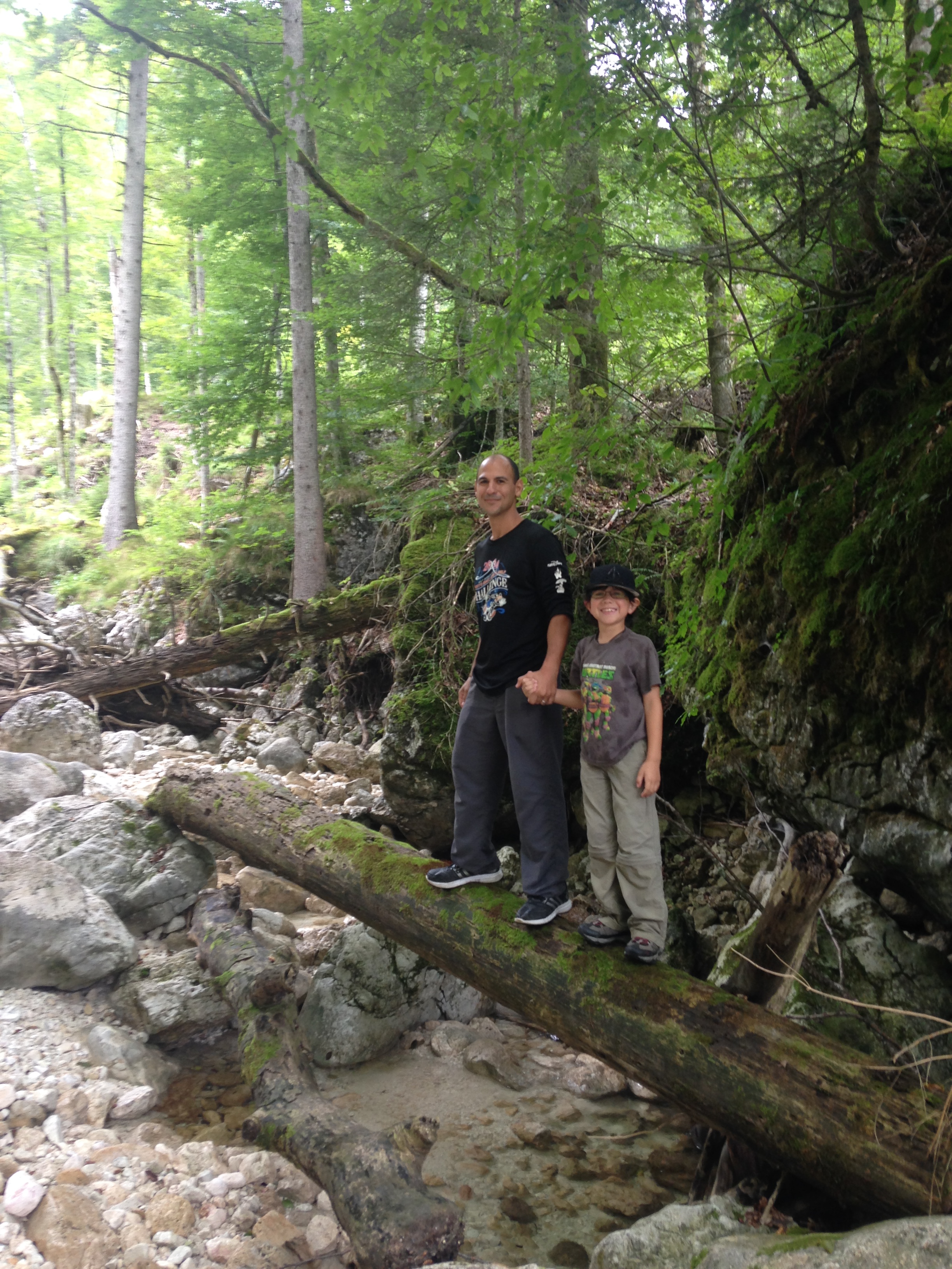 On our way back from the salt mines, we stopped at a spot where we planned to hike up to an ice cave, but it turned out that it was a 4 hour hike, so we scrapped that idea and just spent a couple of hours going for a more leisurely hike. We found a nice spot by a river where Hayden and Adam built bridges and jumped over the waterfalls. It was a lot of fun!