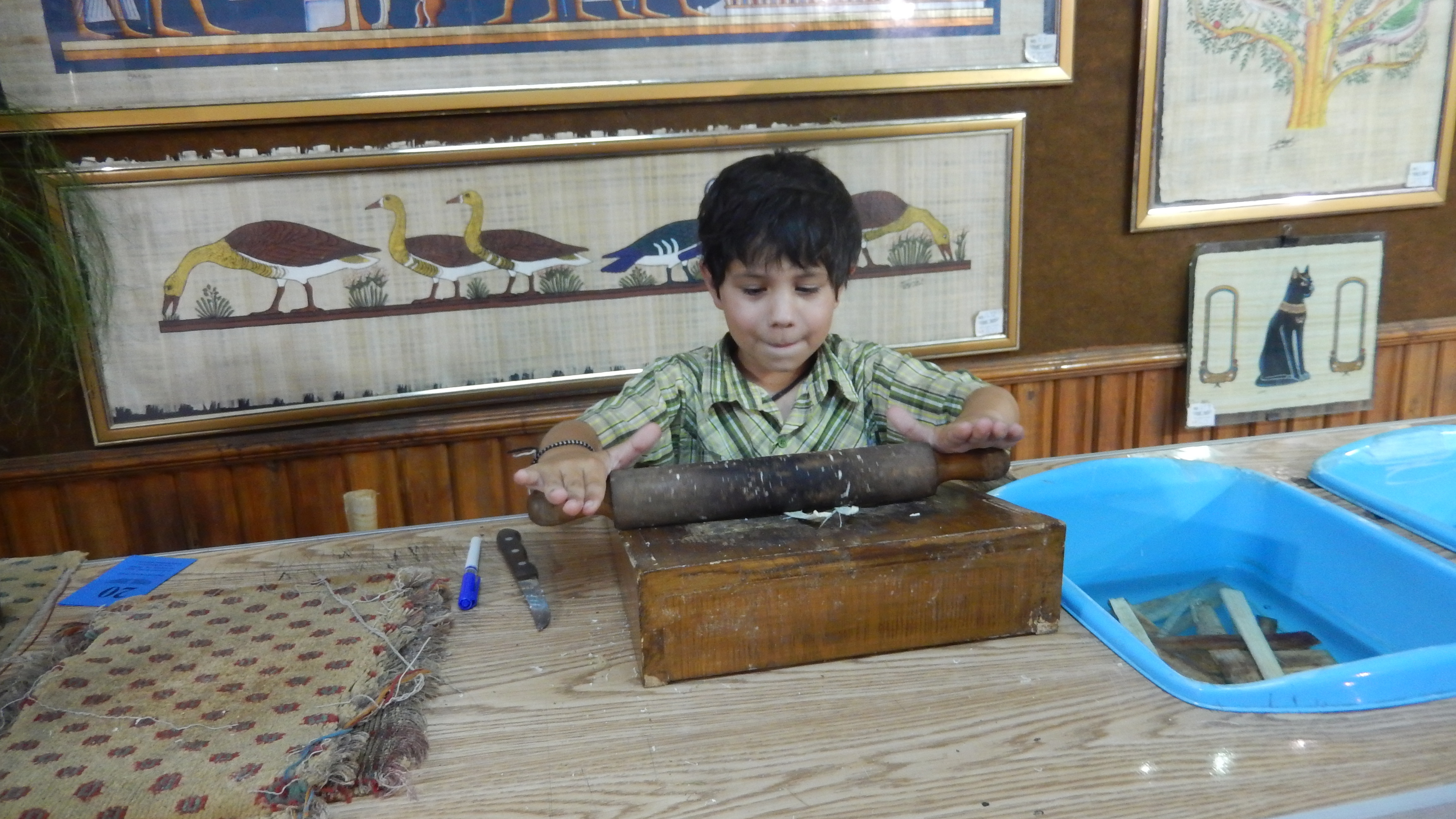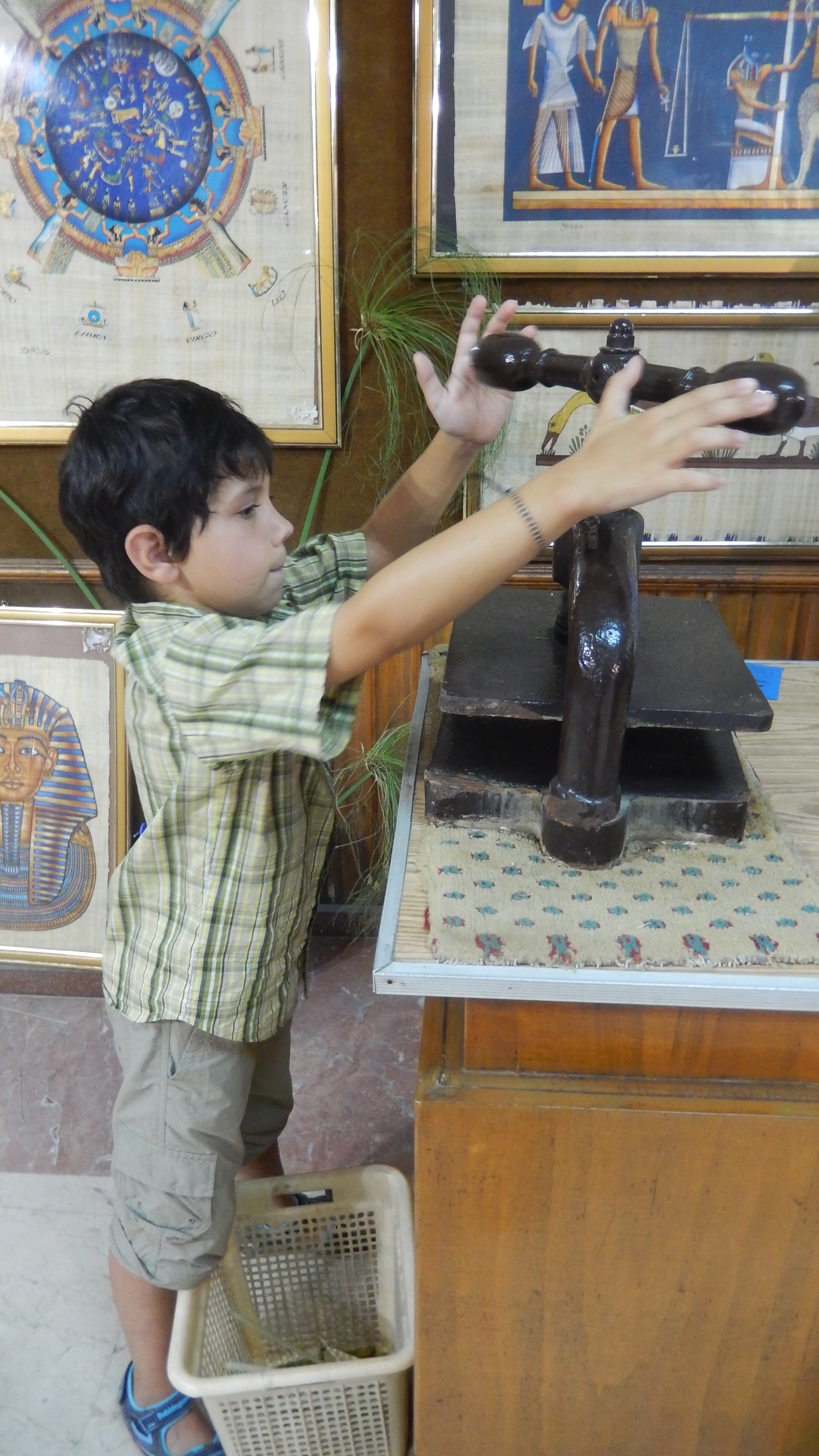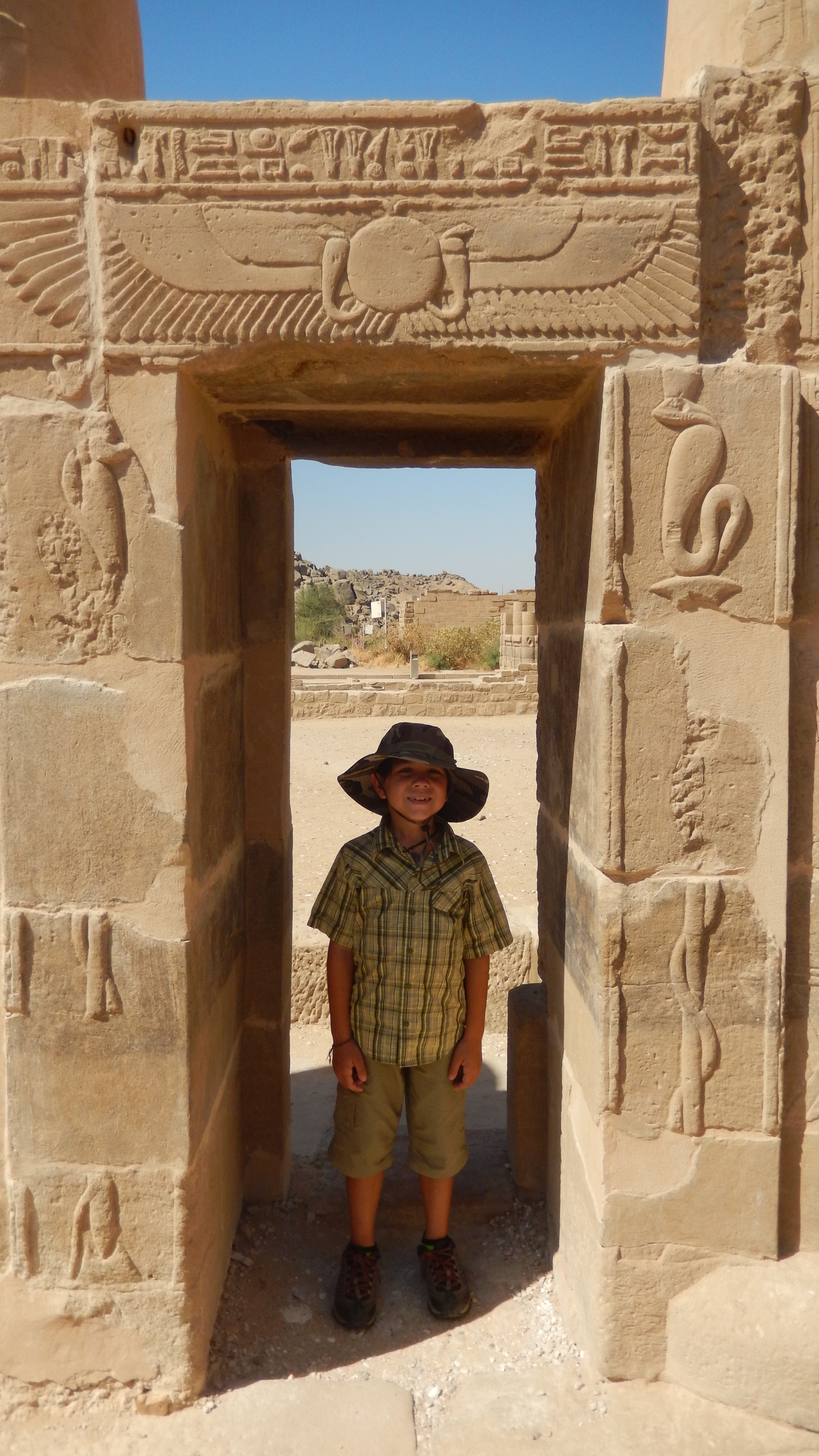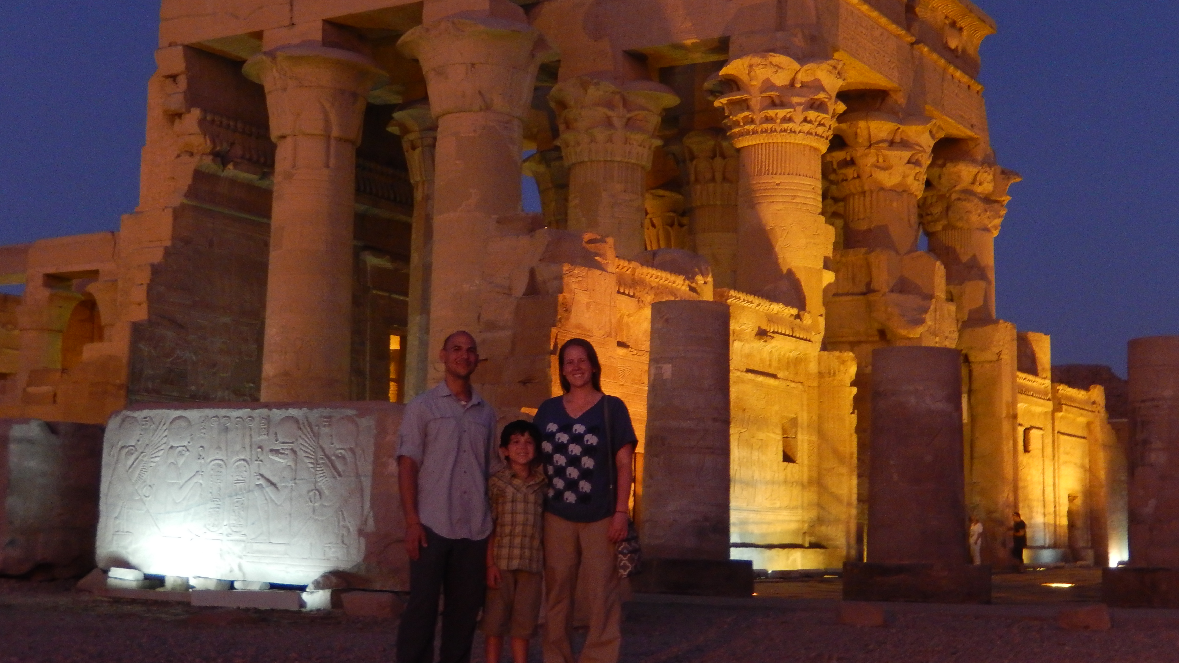 We were back on the ship in time for lunch and to set sail for Kom Ombo. The sailing was great, the views of the Nile on the ship were great. We got to Kom Ombo in the early evening and decided to go see the temple at that time to avoid the heat in the morning. Once again, the temple was very cool. Hayden absolutely loves Egypt, so he is having a great time going through all of the temples. He has taken it upon himself to learn hieroglyphics, so he has been telling us all about the letters as we go through. They also had a museum for the God Sobek next to the temple. Sobek was a crocodile, so there used to be a “divine” crocodile in each temple and when it died, it would be mummified. Many of the crocodiles that have been found are here. There are all different sizes and even some mummified eggs.